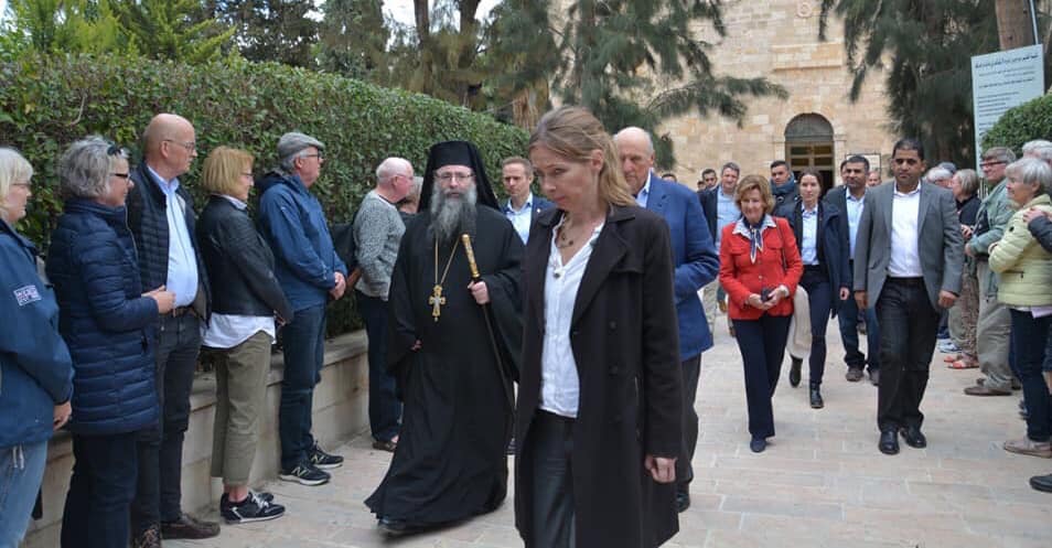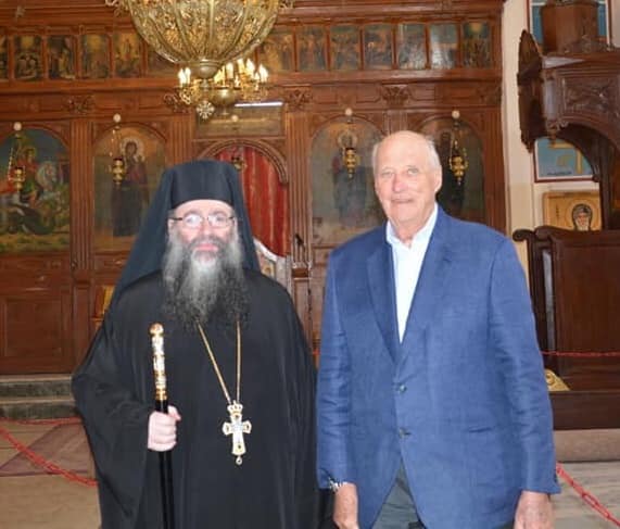 أستقبل النائب البطريركي في مأدبا قدس الأرشمندريت رفائيل في محافظة مأدبا صباح اليوم العاهل النرويجي الملك هارلد الخامس وزوجته الملكة سونيا والوفد المرافق لهم .