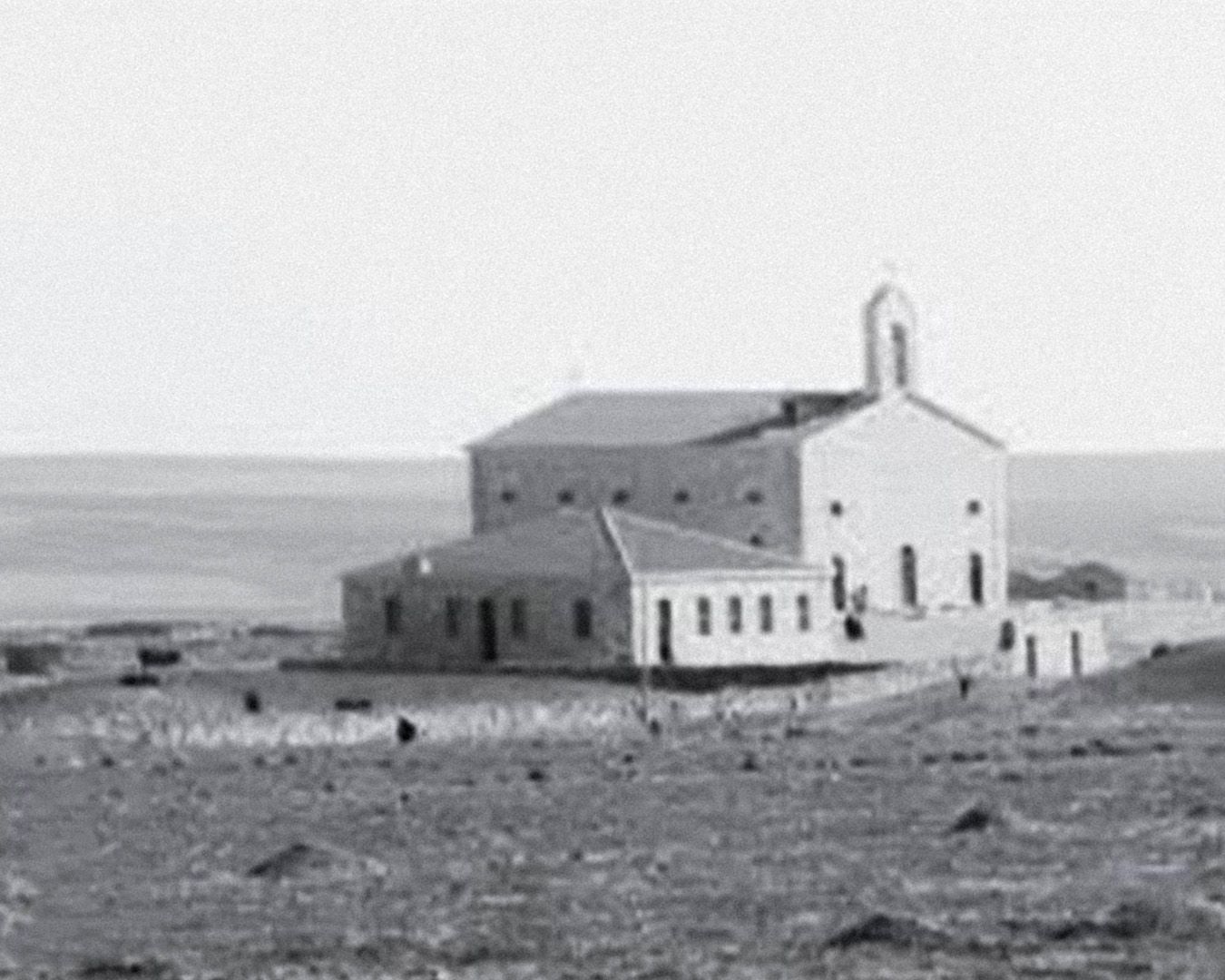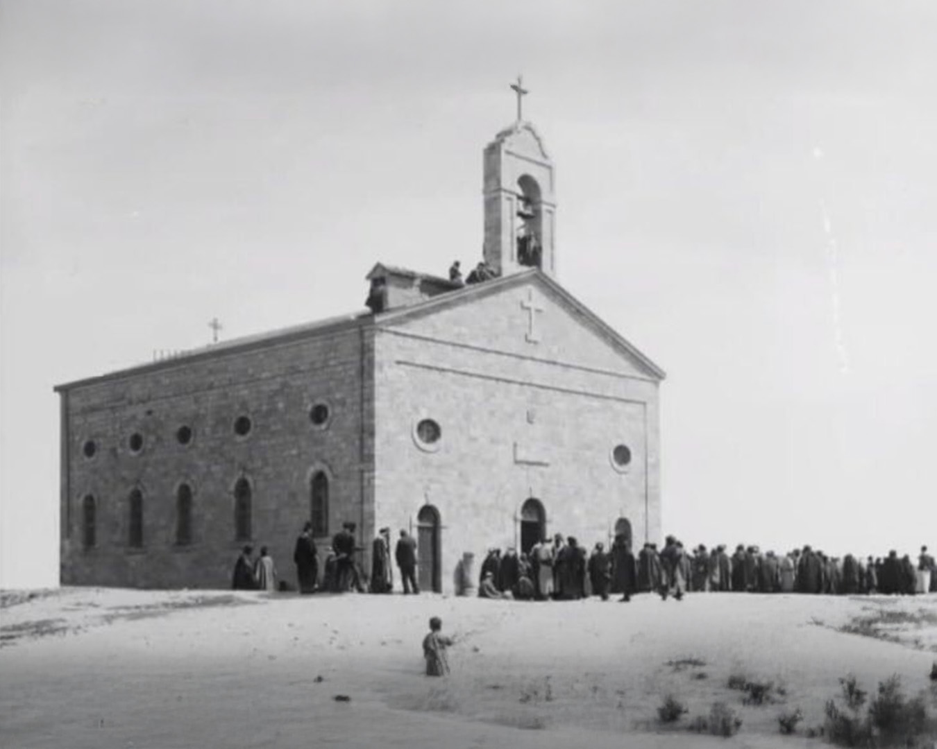 This photograph shows St. George’s Church in Madaba in 1914. The building appears in its early form, with clear and simple architectural features.